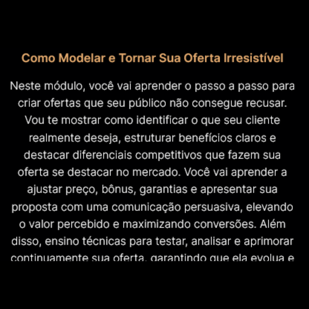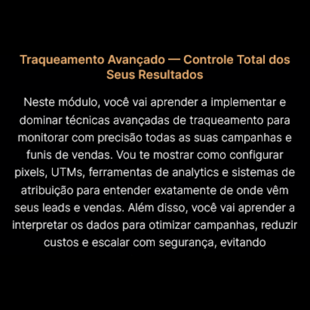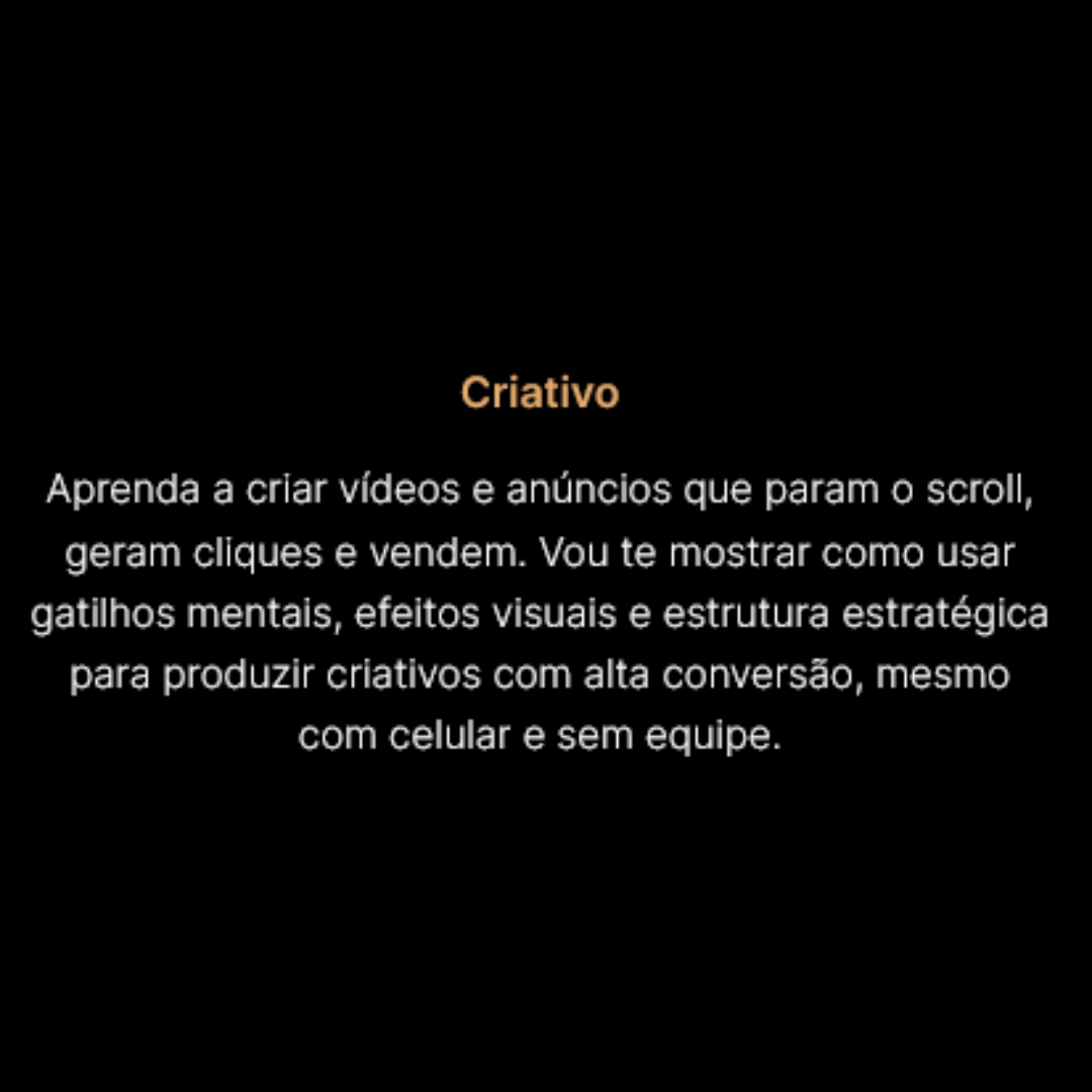 Aprendi tudo o que precisava para virar o jogo: copywriting, programação, criação de sites, edição de vídeo, gestão de tráfego, automação, inteligência artificial e o mais importante — como construir e escalar infoprodutos que vendem de verdade.