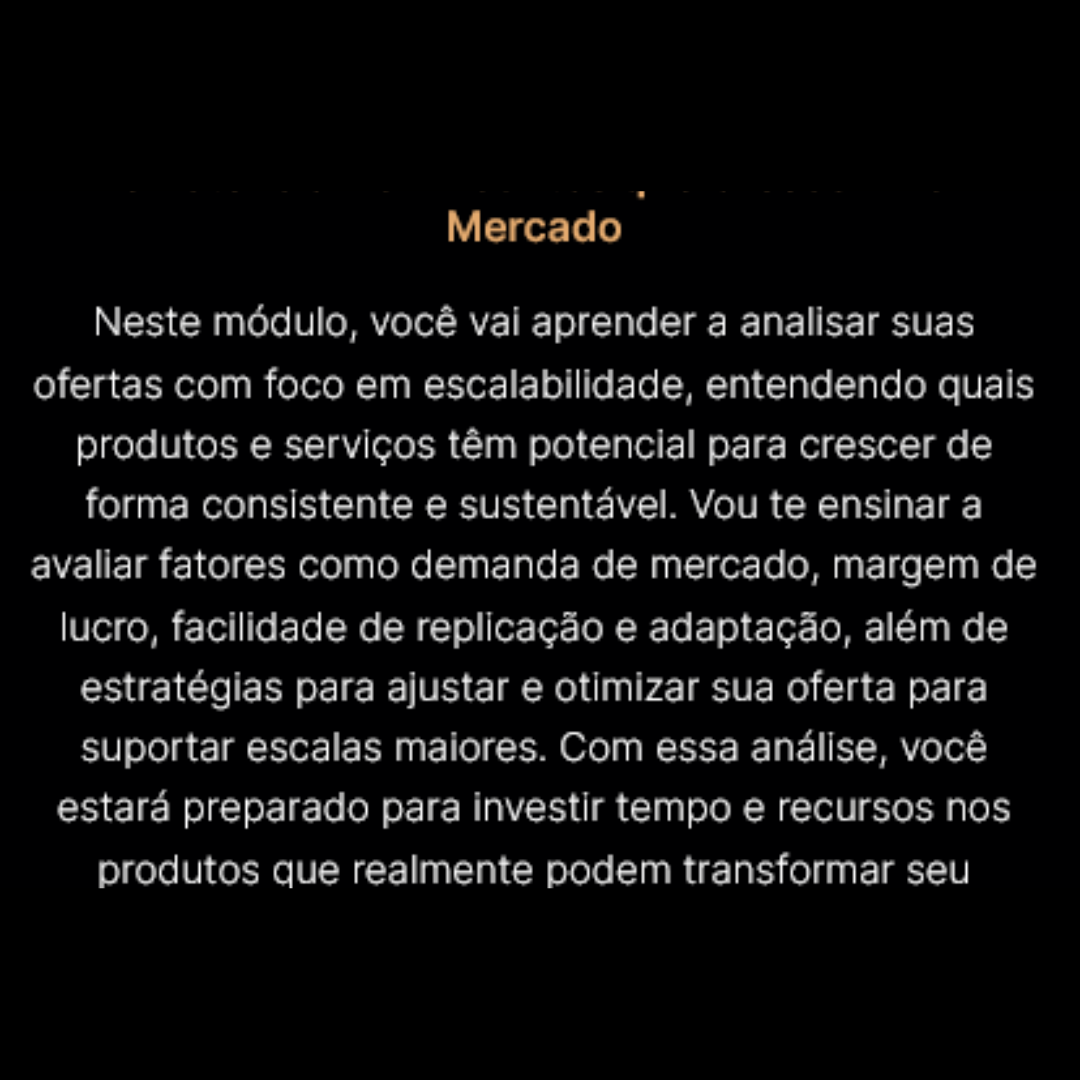 Quero Escalar Meu NegócioEu pessoalmente vou te ensinar a construir um modelo de negócios com infoprodutos, usando as ferramentas mais avançadas do mercado, que me gera múltiplos 5 dígitos por semana em faturamento e você pode começar do zero.